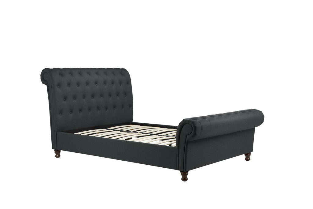 The perfect statement piece, the Castello combines stylish buttoned detailing with a striking rolled headboard and footboard design.