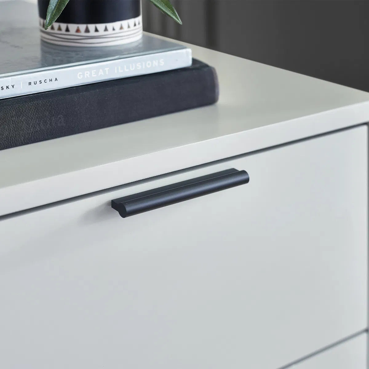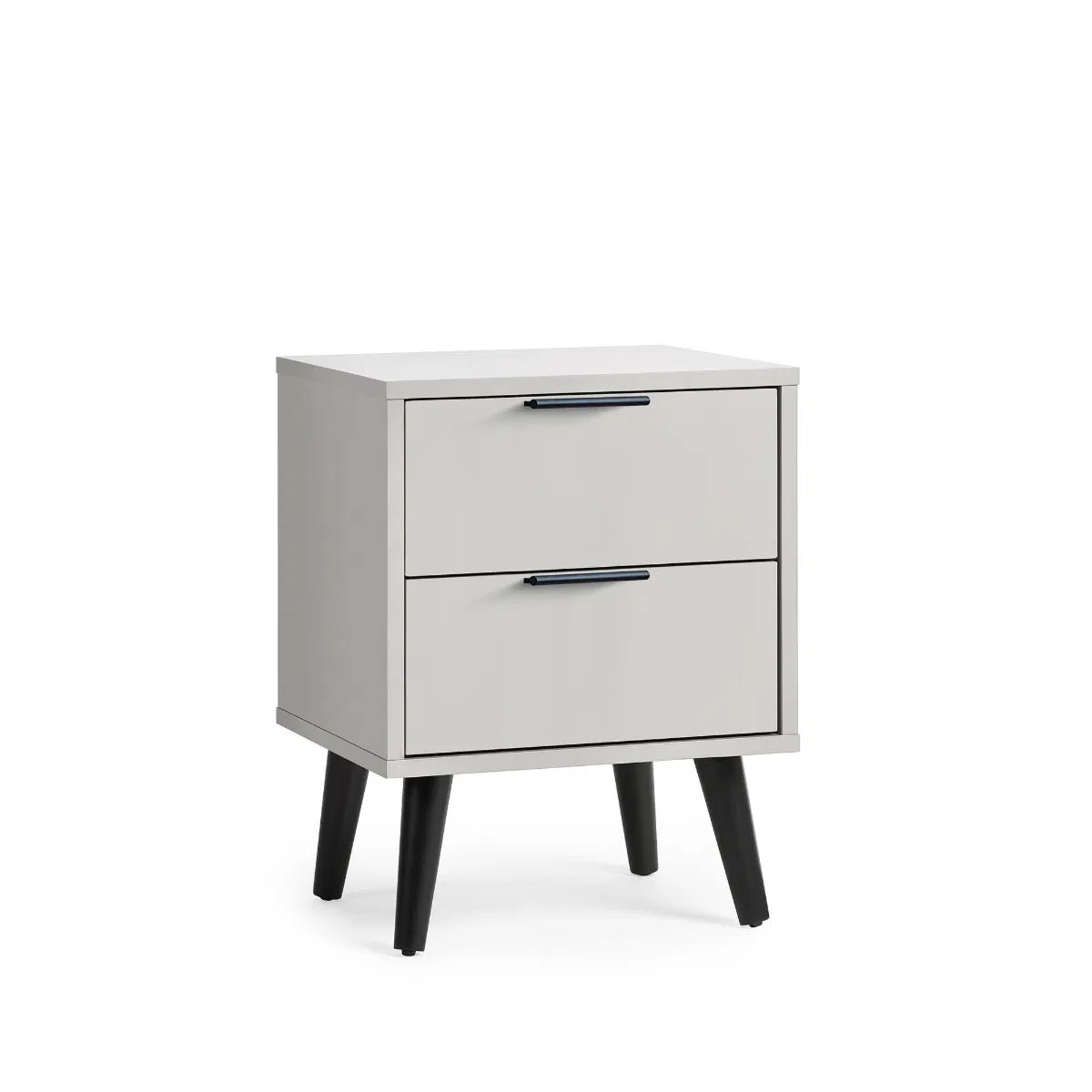 The Alba 2 Drawer Bedside in 3 Finishes seamlessly combines sleek modernity with a touch of elegance. Its light grey lacquered finish is beautifully complemented by matte black handles and legs, adding a stylish accent to any bedroom décor. Featuring two spacious, soft-close drawers, it offers smooth, quiet operation and ample storage for your essentials. With its clean lines and minimalist design, this piece is perfect for enhancing both the functionality and aesthetic of your space.