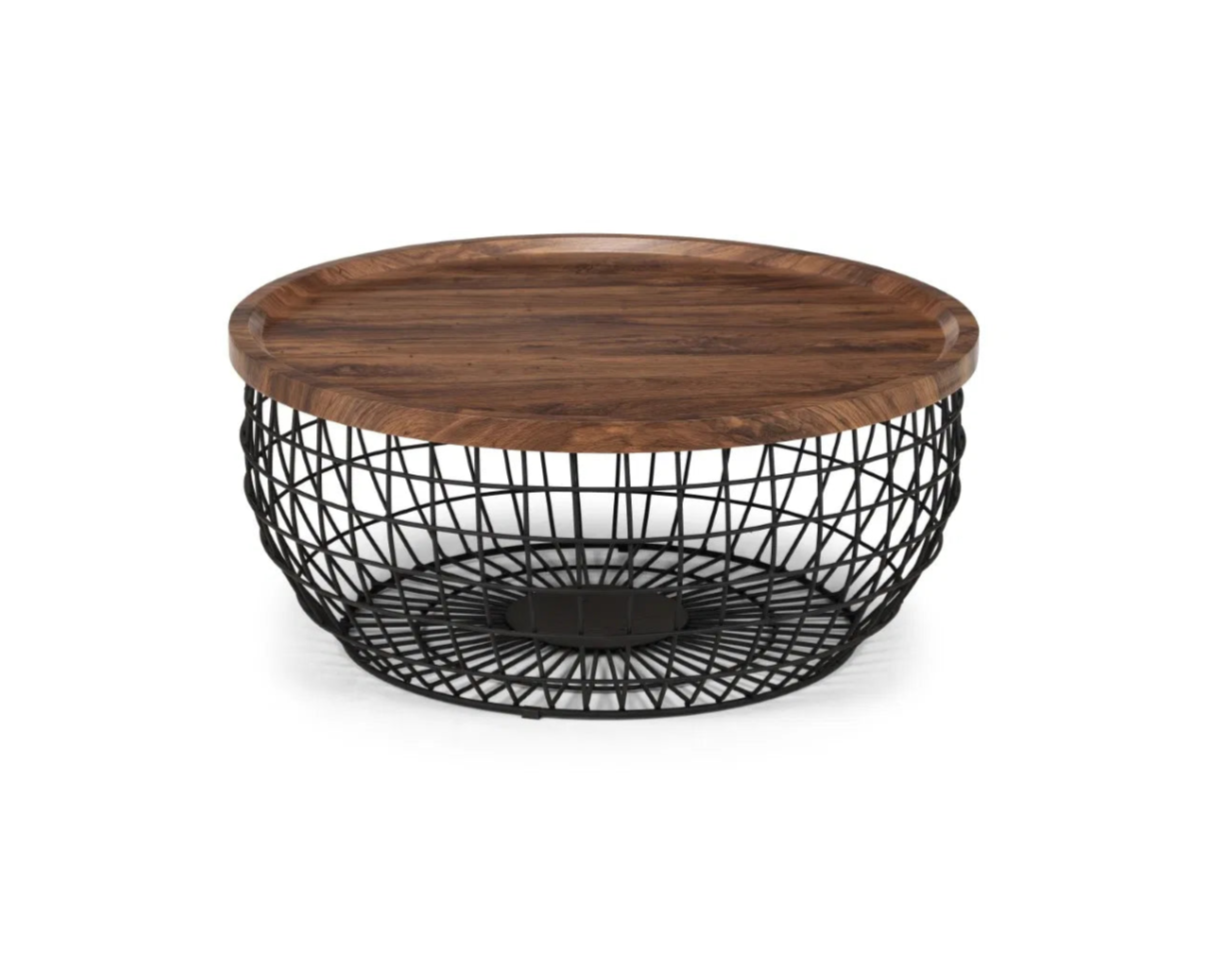 Featuring a lift up top, the Smithson coffee table offers plenty of storage with its wire basket appearance. Simply lift the walnut effect top off and place your items in the wire frame. A raised lip on the top prevents anything from falling easily. Perfect for a wide range of modern, industrial living areas.