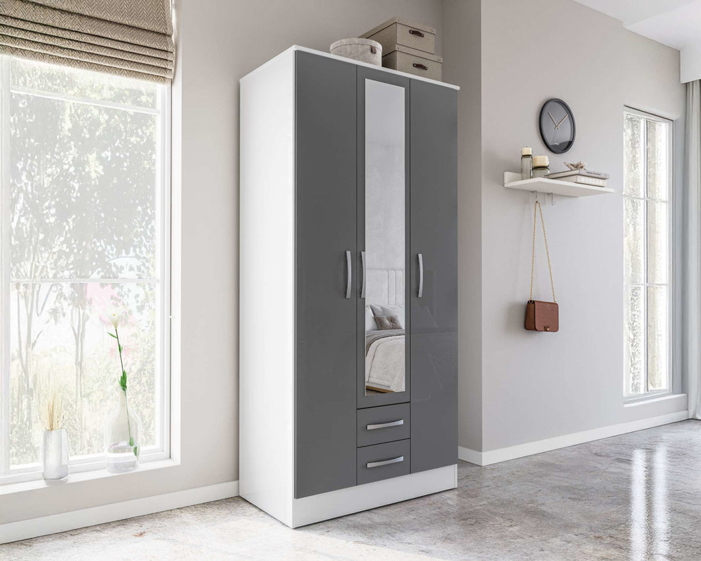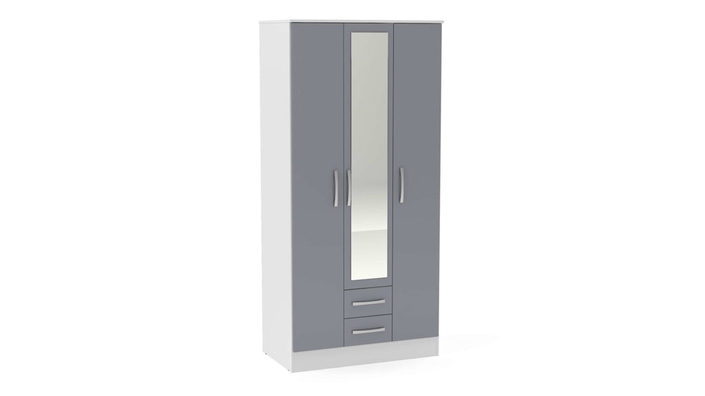 Modern and sleek, the Lynx 2 door sliding wardrobe with mirror combines a high-gloss finish with bold silver detailing to make any space feel contemporary. Constructed from MDP (multiple density particleboard), this high-quality wardrobe features a sliding mirrored door plus an internal top shelf for additional bedroom storage.