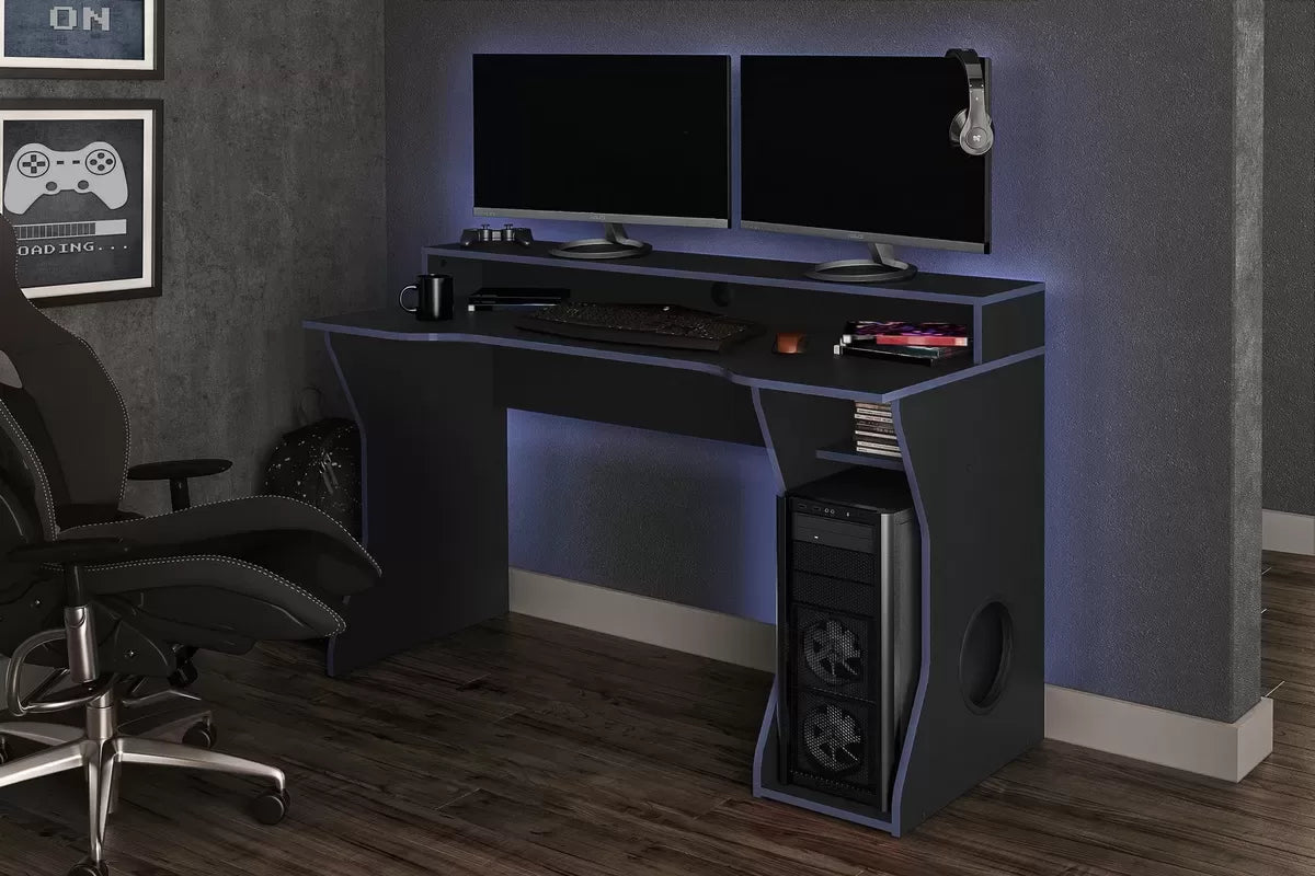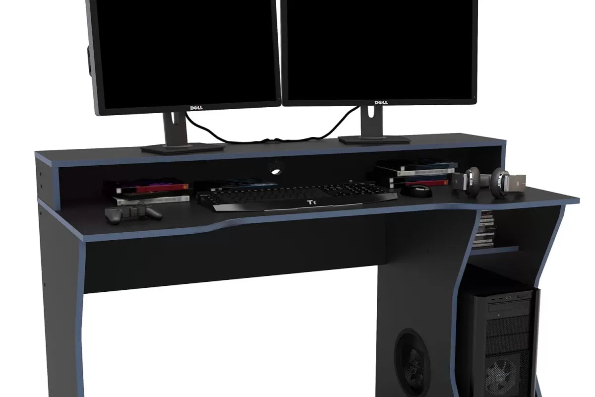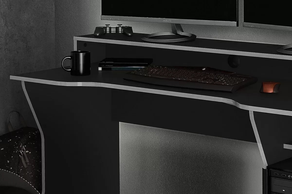 The Enzo gaming computer desk has been made with gamers fully in mind! It has everything a busy gamer could need. Featuring a large top shelf big enough for two large monitors and a generously sized ergonomic desk below suitable for the keyboard, mouse, controllers, games and more. The base of the desk features a computer store away with a ventilation hole and small shelf for games or controllers. This modern looking gaming computer desk is available in 3 finishes making it a stunning addition to any home or office. Care instructions: Wipe carefully with a soft, dry cloth.