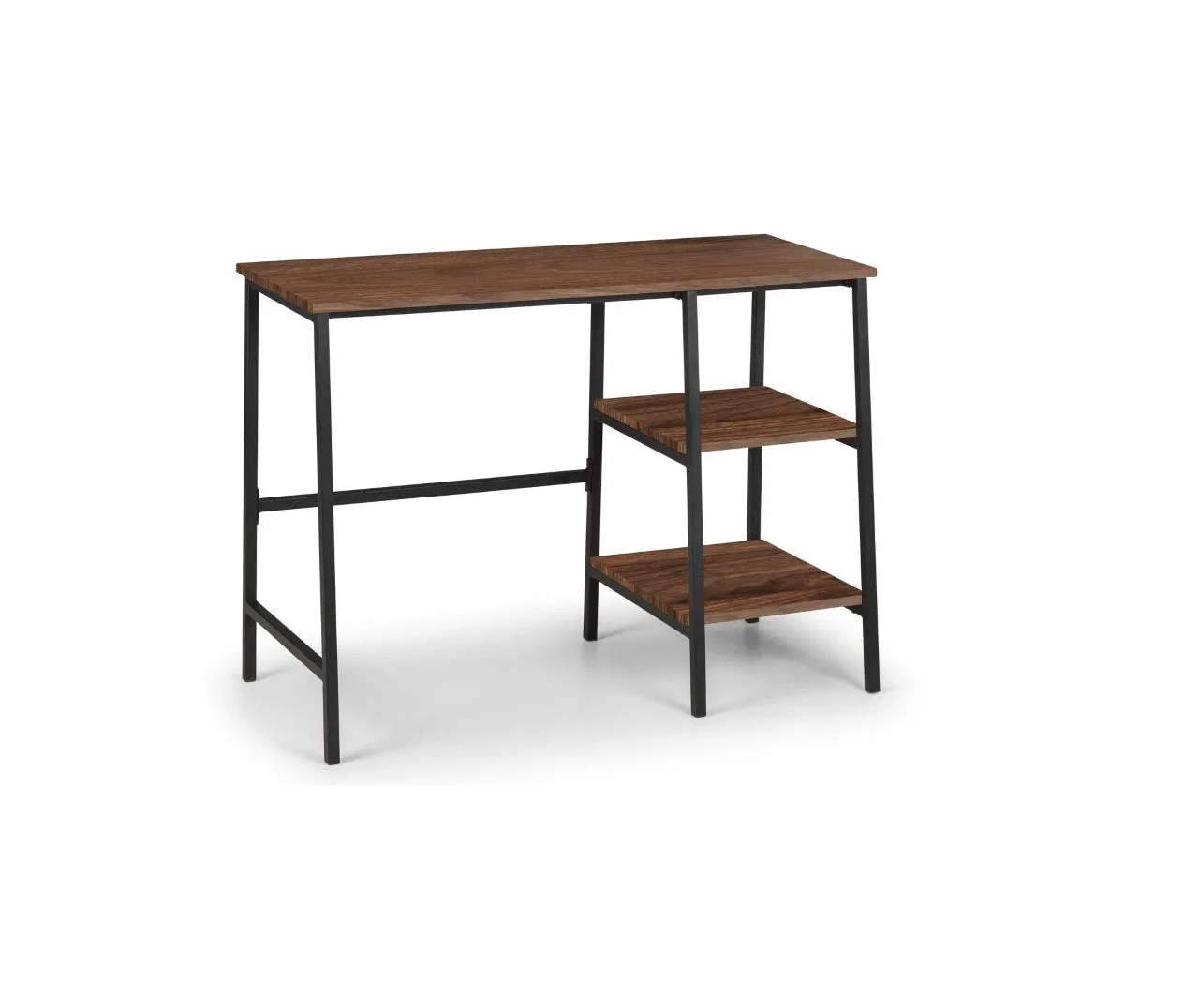 A cool, modern desk designed to add a contemporary touch to any living space. Its simple clean lines, delineated by a subtle, black coated metal frame are complemented perfectly by a warm, sonoma oak foil, to create a very stylish and sleek product. This desk features 2 shelves on the right hand side, suitable for stationary storage.