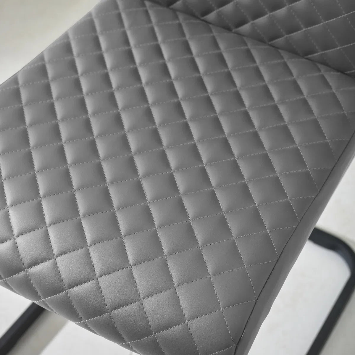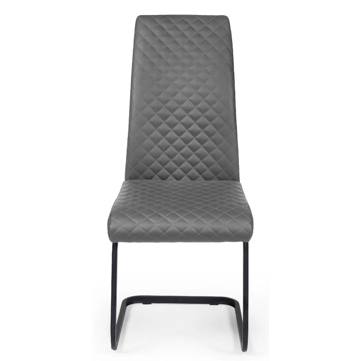 Add a sleek, modern touch to your dining space with this charcoal faux leather dining chair. Featuring a stylish diamond-quilted design and a supportive high backrest, it combines comfort with contemporary flair. The soft, durable faux leather is easy to clean, while the black cantilever base provides sturdy support and a striking contrast.
