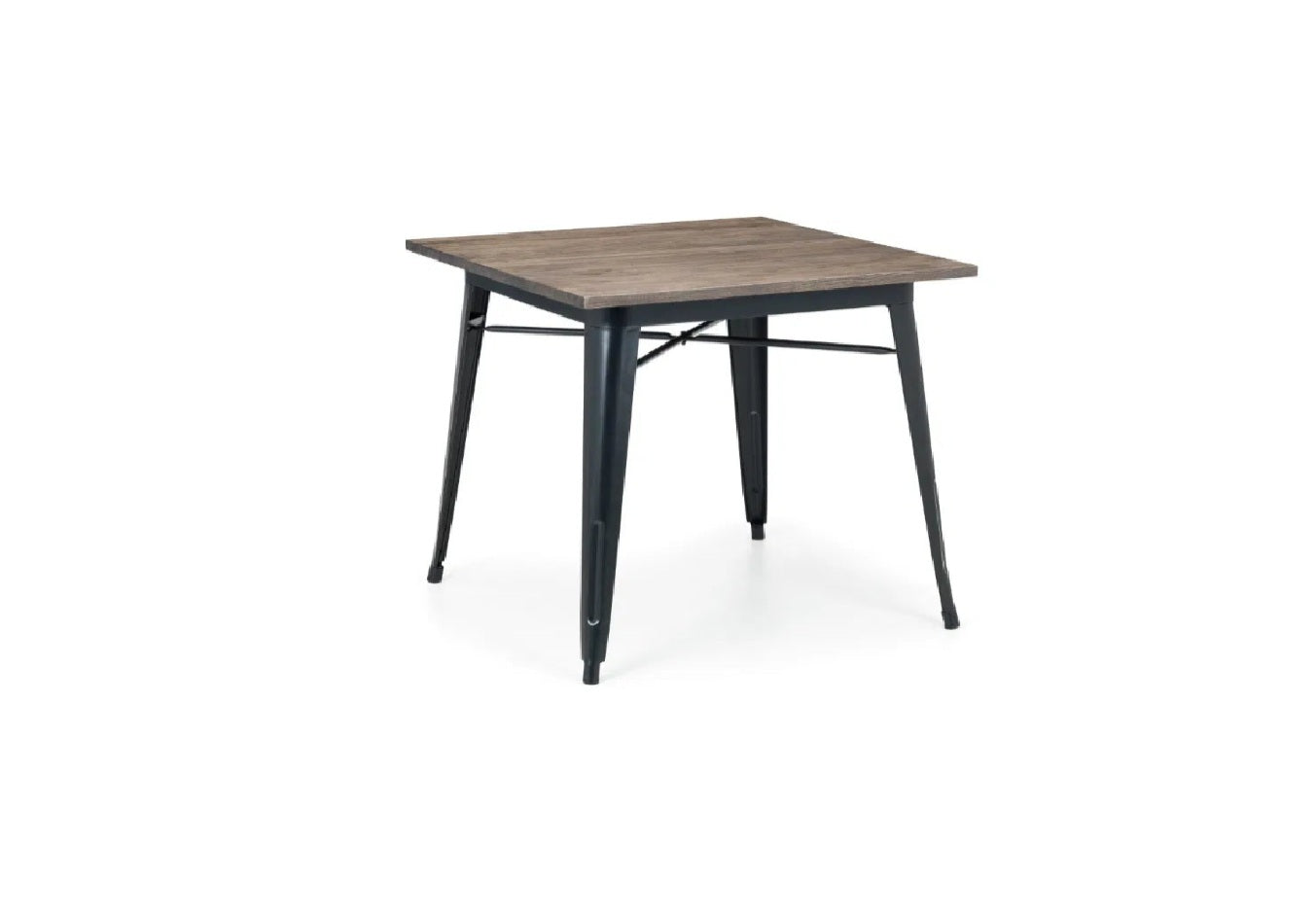 This Tolix style table is crafted from solid elm and powder coated steel. Seating up to 4 people, the Grafton Square Table offers an industrial design is perfect for any small dining area. Finished in a mocha elm and black finish, this table is the perfect match for the Grafton Metal Chair.Height: 75cm x Length: 80cm x Width: 80cm