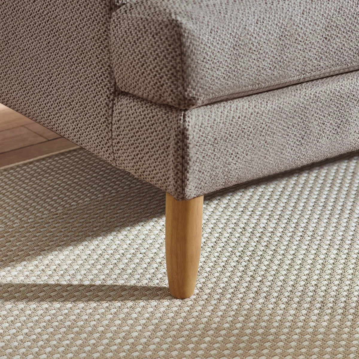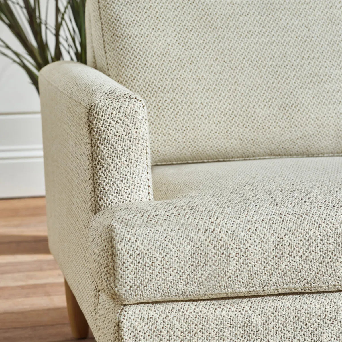 Soft-touch Pearl Barley chenille upholstery.
