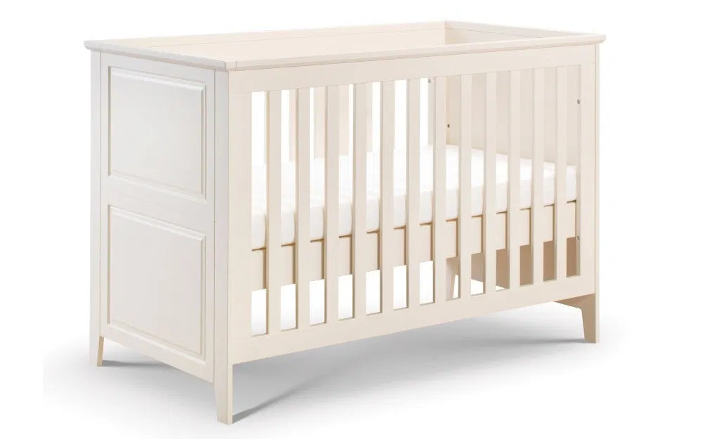 Elegant Design: Features a classic stone white finish for a timeless look. Convertible: Easily converts from a cot to a toddler bed. Sturdy Construction: Made from high-quality materials ensuring durability. Safe and Secure: Designed with safety rails to keep your baby secure. Comfortable Sleeping Area: Provides a comfortable sleeping space for your baby.