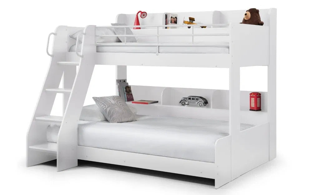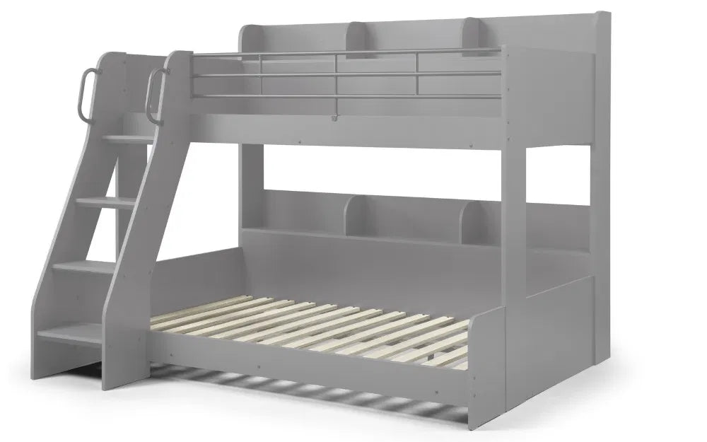 In a choice of white or light grey finish, the Domino Triple Sleeper is the perfect bed for your little ones. With the lower bunk accommodating two children, and the top bunk an additional one, Domino maximises floor space by combining three sleeping solutions using the space of one. Multifaceted and extremely functional in design, this bed can be adapted to suit your child’s needs. The classic design and finish of this bed means it is not limited to children’s bedrooms but is ideal for guestrooms too.