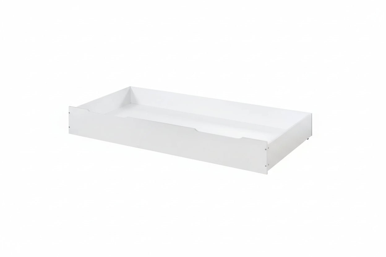 This useful underbed is the perfect companion to the Ellie Bunk Bed (sold separately). The solid base panel, crafted from particleboard with white foil, allows the unit to be used as either an extra bed or a huge storage drawer to make tidying up a doddle! The Ellie Underbed/Storage Drawer fits a standard UK Single sized mattress (90cm x 190cm) with a maximum depth of 18cm (7 inches).