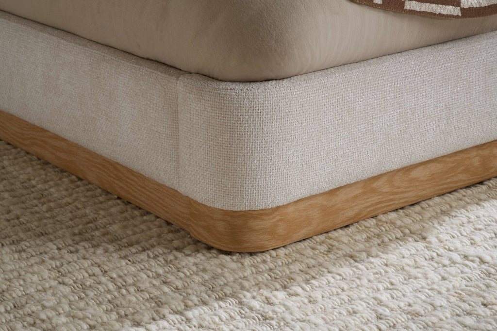 The Girona Bed combines contemporary style with practical design, making it an excellent choice for modern living. Its standout feature is the beautifully upholstered frame finished with a faux wood-effect fabric — a clever design that captures the warmth of natural timber while maintaining the softness and comfort of fabric. This unique touch creates a natural yet contemporary look that feels both stylish and inviting.