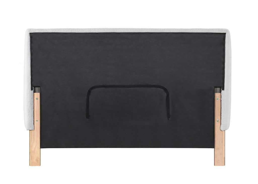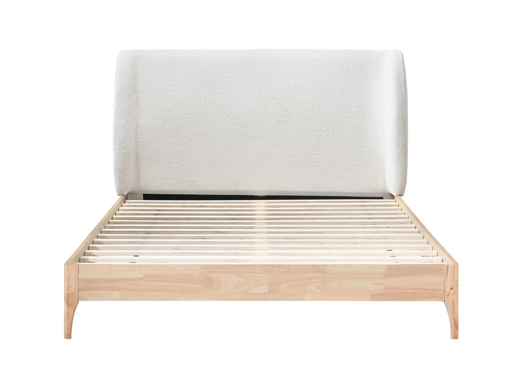 The Halfden bed is a modern classic. Characterised with a soft touch upholstered Bouclé headboard and strong wooden frame, this distinct bed design is an ideal bed for modern bedroom decor.
