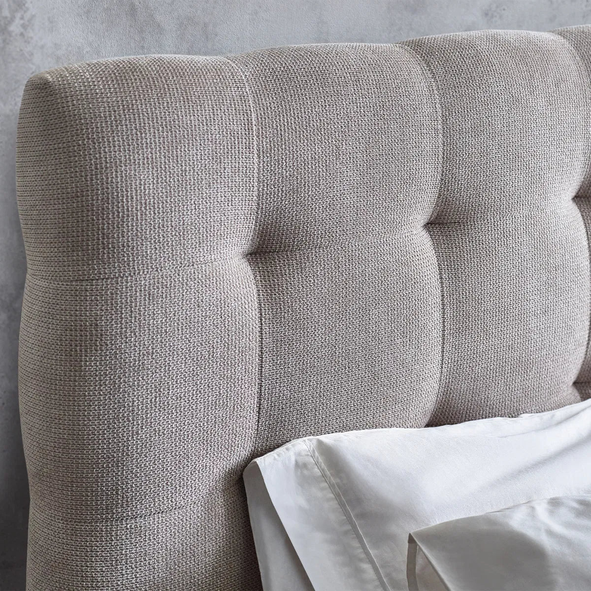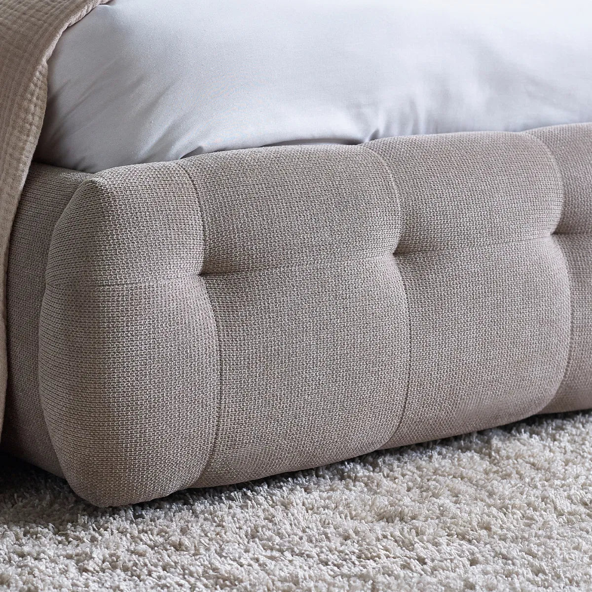 Indulge in the luxurious comfort and timeless elegance of the Odette bed. Crafted with precision, this bed features a sturdy frame made from high-quality light taupe polyester, ensuring both durability and longevity. The tufted headboard adds a touch of sophistication while providing comfortable support for your back, making it ideal for late-night reading or lounging in style. Mattress is sold separately.