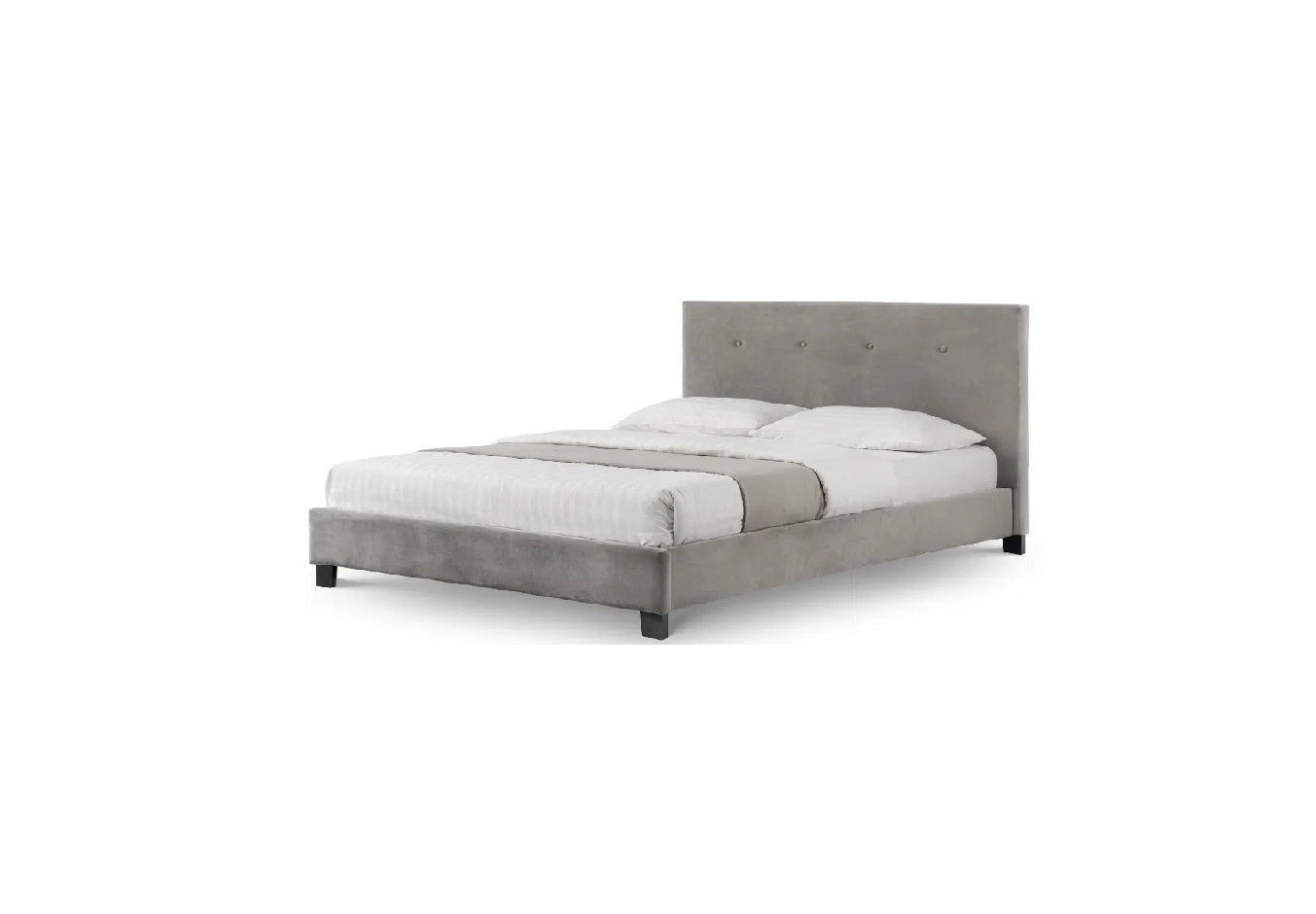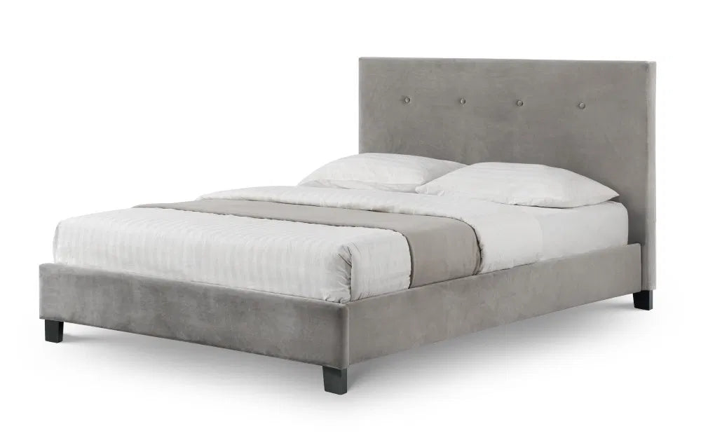 Shoreditch is a stunning bed with modern, clean lines, beautifully upholstered in an exquisite short-pile slate grey velvet fabric. Shoreditch has an imposing, high headboard, with immaculate button detailing which adds a real wow factor to any bedroom, while its timeless styling makes it the ideal accompaniment to a wide range of decorative styles. A sprung slatted base ensures supreme comfort and prolonged mattress life.