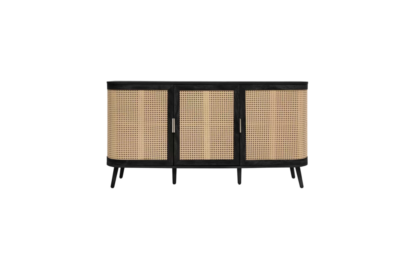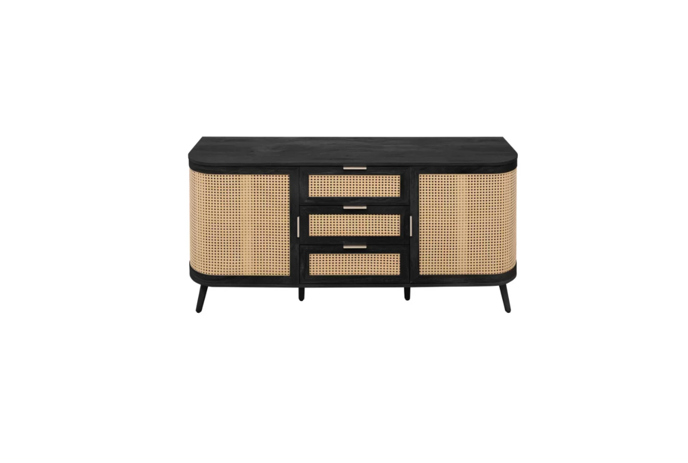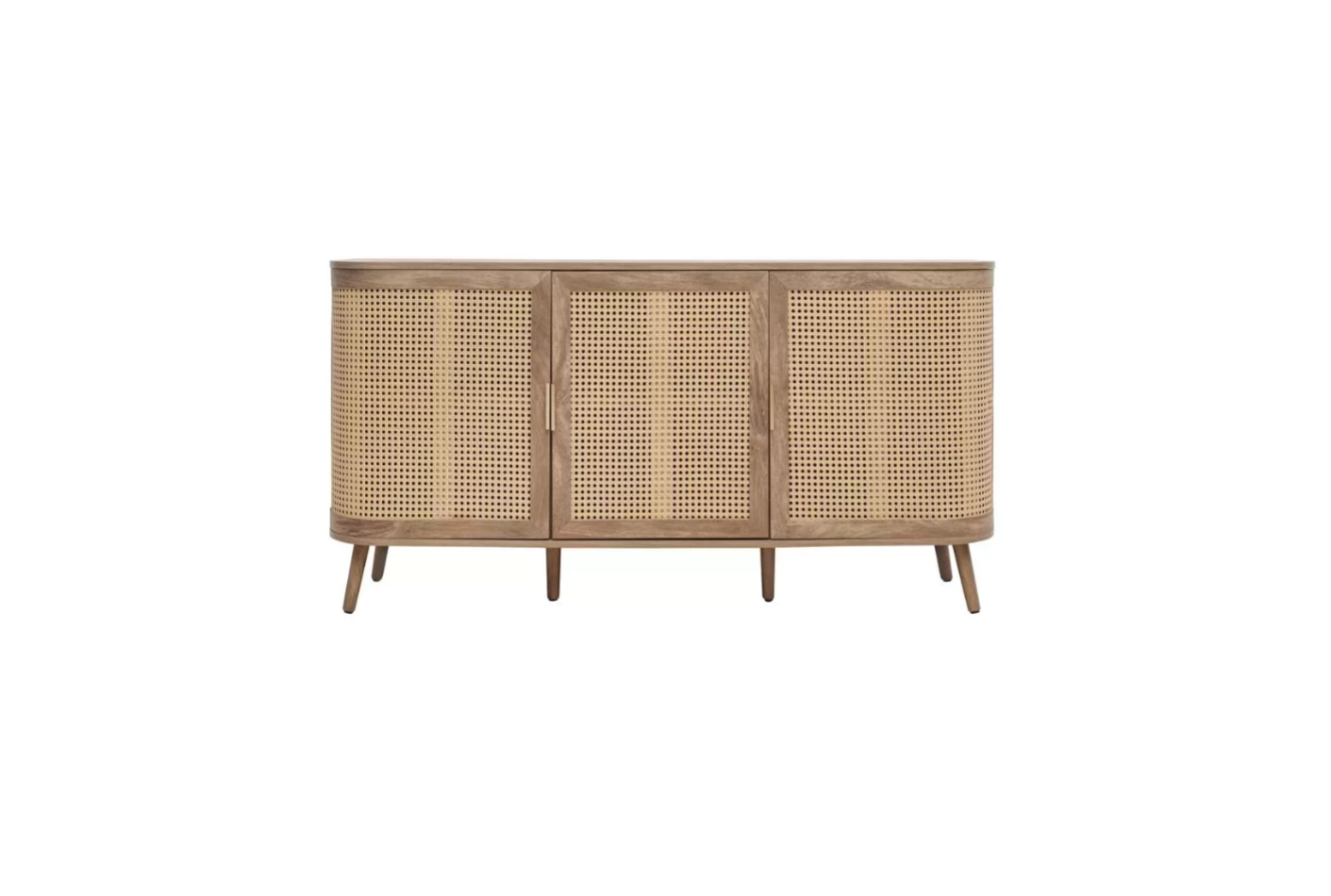 Each curve is thoughtfully softened, featuring delicate bevels that whisper a modern sensibility. The rattan front is meticulously woven, presenting a pattern that is both eye-catching and gracefully reserved. The warm, neutral palette ensures versatility, while the smooth wooden surfaces invite a tactile experience.
