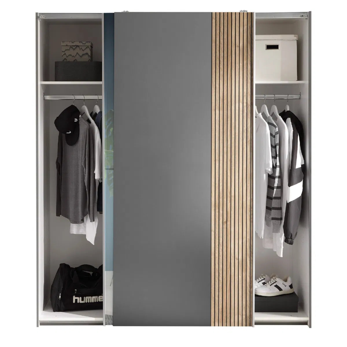 Enhance your bedroom with this sleek and space-saving sliding door wardrobe, designed for both style and practicality. Featuring a full-length mirrored door, it not only adds a touch of elegance but also creates the illusion of a larger, brighter space. The smooth sliding mechanism ensures effortless access to your belongings while maximising floor space.