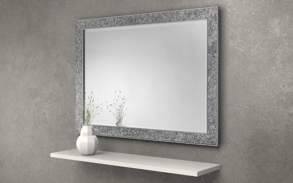 Add a touch of glamour to your home with the Staccato Wall Mirror. Featuring a glass fragment frame finished in a stunning silver, ideal for both classic and contemporary home décor.