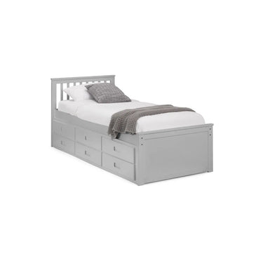Finished in a crisp lacquer, the Maisie bed features a traditional slatted headboard. Providing sleeping space for two people, this bed includes a pull-out underbed and additional storage drawers, maximising the available floor space. Perfect for any children’s bedroom or guest room.