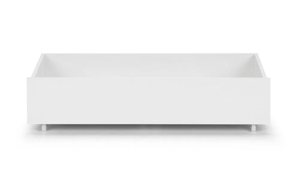 The Set of 2 Manhattan Underbed Drawers are available for extra storage for the Manhattan Bookcase Bed. Finished in a white high gloss, these drawers are on casters that can be pulled out at ease.