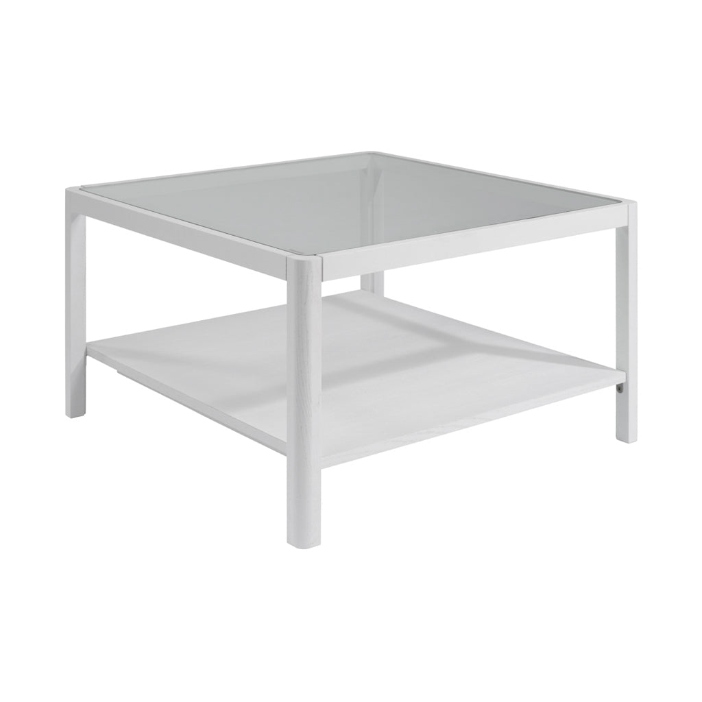 This coffee table pairs a sleek black matte grain or white frame with a refined glass top for a clean, contemporary look. A practical lower shelf provides discreet storage, while the minimalist silhouette and timeless design make it a versatile addition to any living space.