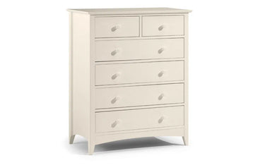Cameo is a beautiful stone white lacquered bedroom range. Its timeless shaker design is the perfect accompaniment to any interior style and is perfect for grown-up bedrooms and children's bedrooms alike. Solid pine frames ensure a sturdy and durable construction. The Cameo 4+2 chest offers a great storage solution with 2 small drawers and 4 large drawers
