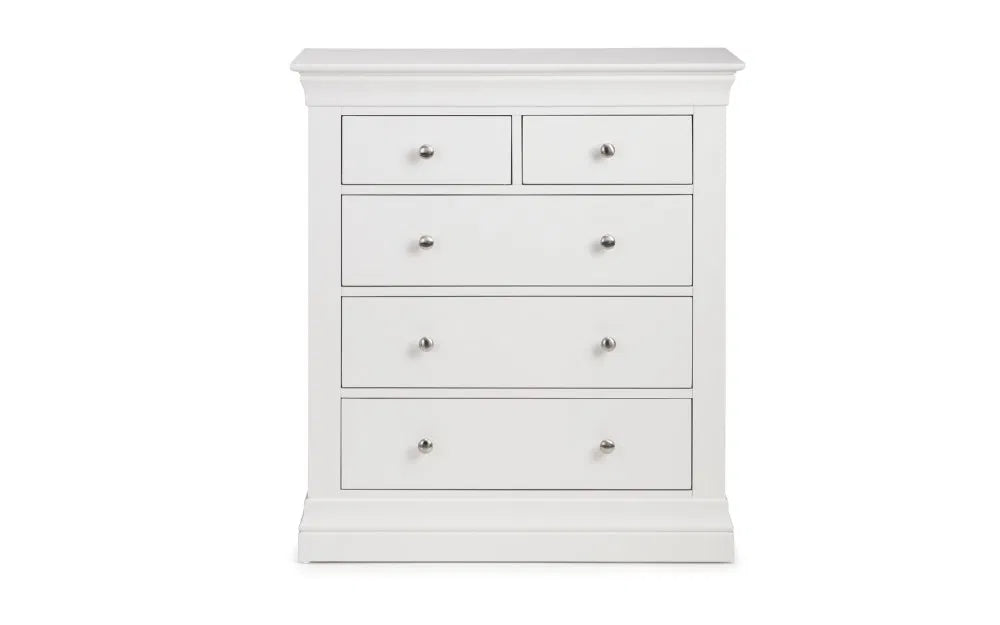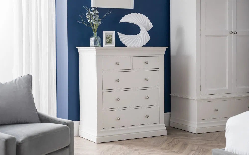 What’s Included: The purchase includes one Julian Bowen Clermont 3+2 Drawer Chest. Minimal assembly required - just add handles.