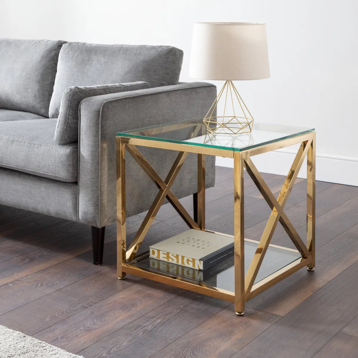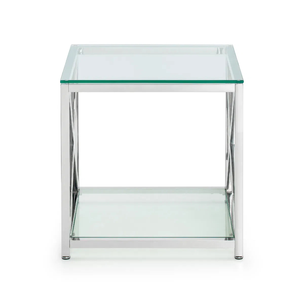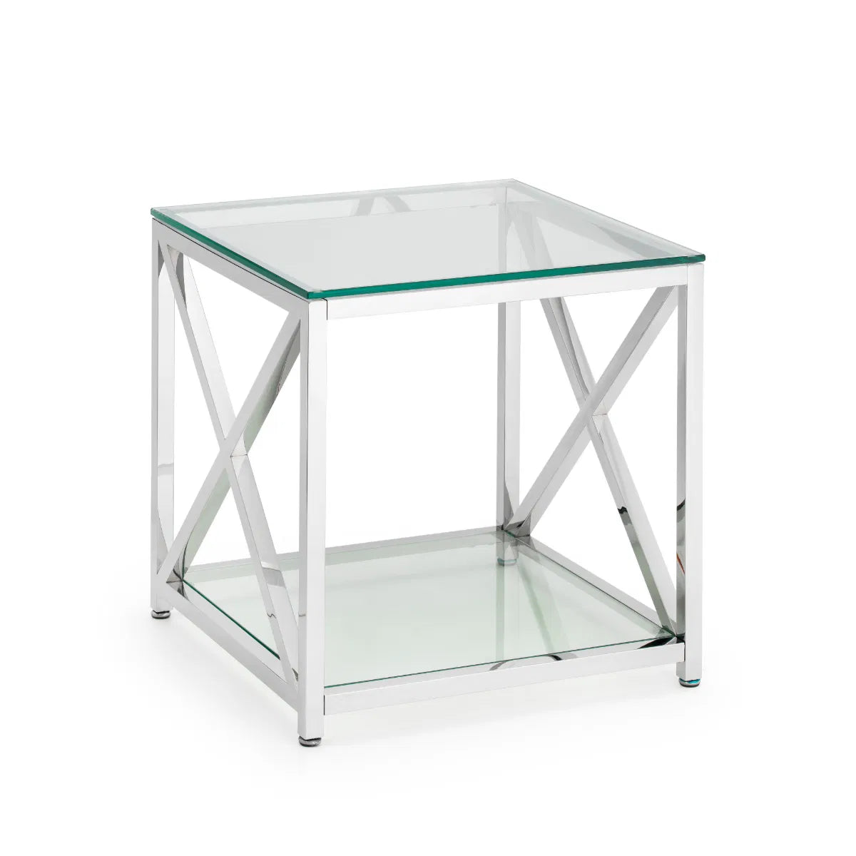 The lavish Miami occasional collection will add a touch of class and luxury to any home. Taking inspiration from the Art Deco period, the Miami features a striking cross frame design. Crafted from a high quality stainless steel frame and tempered glass, this lamp table provides a shelf underneath for additional storage.
