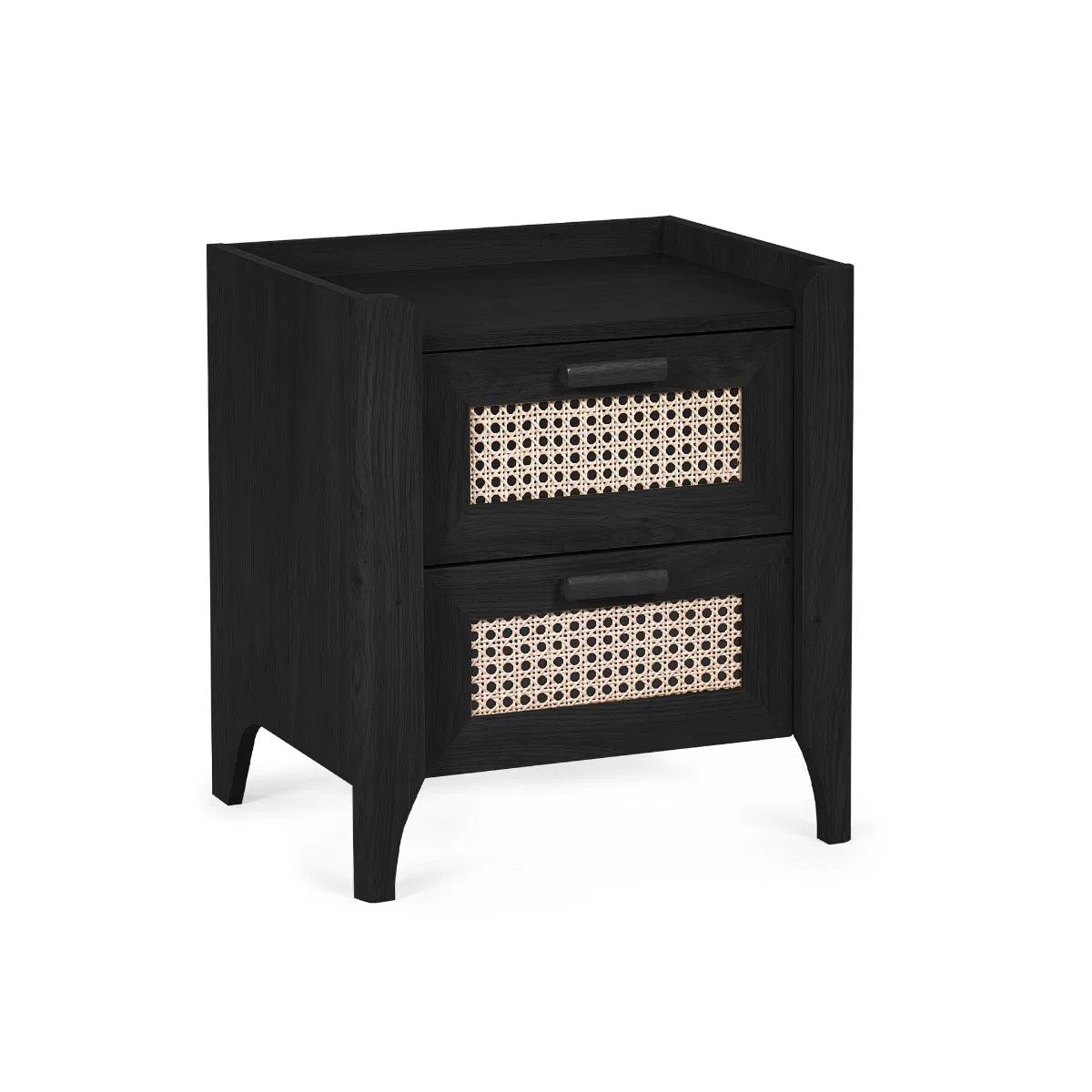 A beautifully sleek design with a bohemian feel, the Sydney 2 Drawer Bedside offers exquisitely curved edging accompanied by a raised lip around the edge providing a practical addition, stunningly combined with a rattan-effect sticker front. Finished with a natural oak effect or  black ash featuring two drawers providing enough storage space to put your belongings away with gloved handles for easy access. Creating the perfect airy, warm feel around your home.